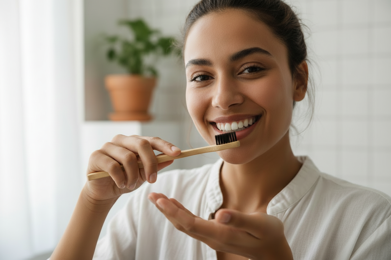 Soft black charcoal bristles for effective and gentle cleaning.